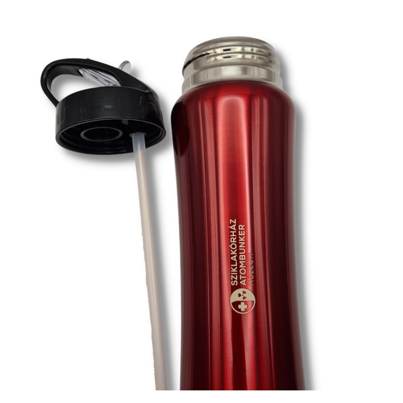 Sziklakórház logóval és felirattal ellátott, piros sportkulacs