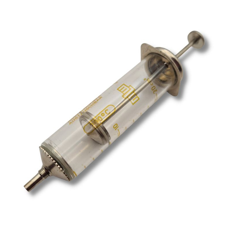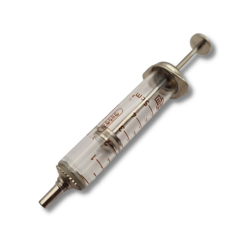 Az üveg fecskendő egy érdekes és történelmi jelentőséggel bíró gyűjtői darab a hidegháborúból. Az üveg test és a fém injekciós tű a múlt idők egészségügyi technológiáját idézi. A gyűjtők és a múzeumok számára kiváló darab lehet a hadtörténeti gyűjteményekben és kiállításokon való bemutatásra. A termék címkéje tartalmazza az alapvető információkat a méretről és az anyagról, valamint az ajánlott tárolási és kezelési előírásokat.